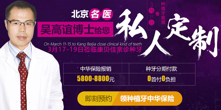 时下正逢大连康贝佳口腔四周年院庆,为感谢滨城市民一直以来的支持与信赖,为让更多缺牙市民享受到国际先进种植技术的好处,让更多市民有机会通过改善口腔条件从而提升综合健康指数,大连康贝佳口腔联合知名种植体厂商等优势资源,携手倾情让利,将于3月17日举办“种植牙直播——即刻有牙活动”,以第四军医大学口腔医学院口腔种植、北京口腔种植中心口腔医学博士后吴高谊为首的医生团将助阵亲诊。>>我要预约吴博士种牙